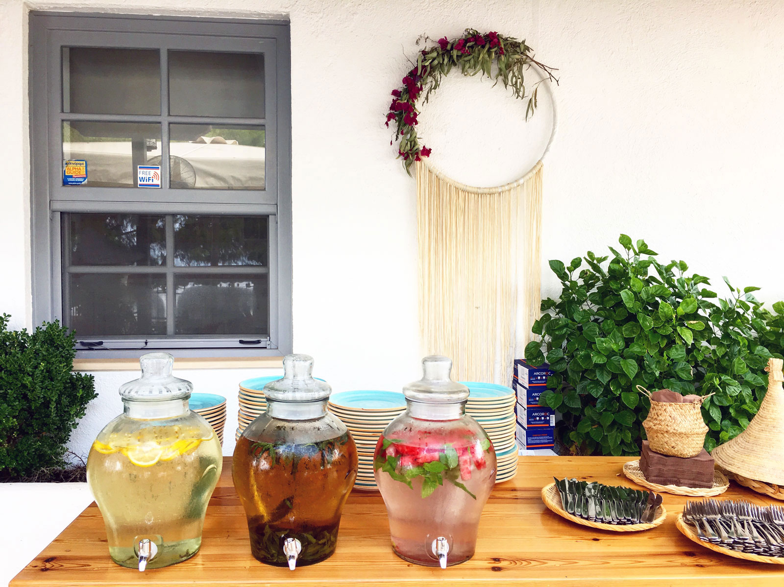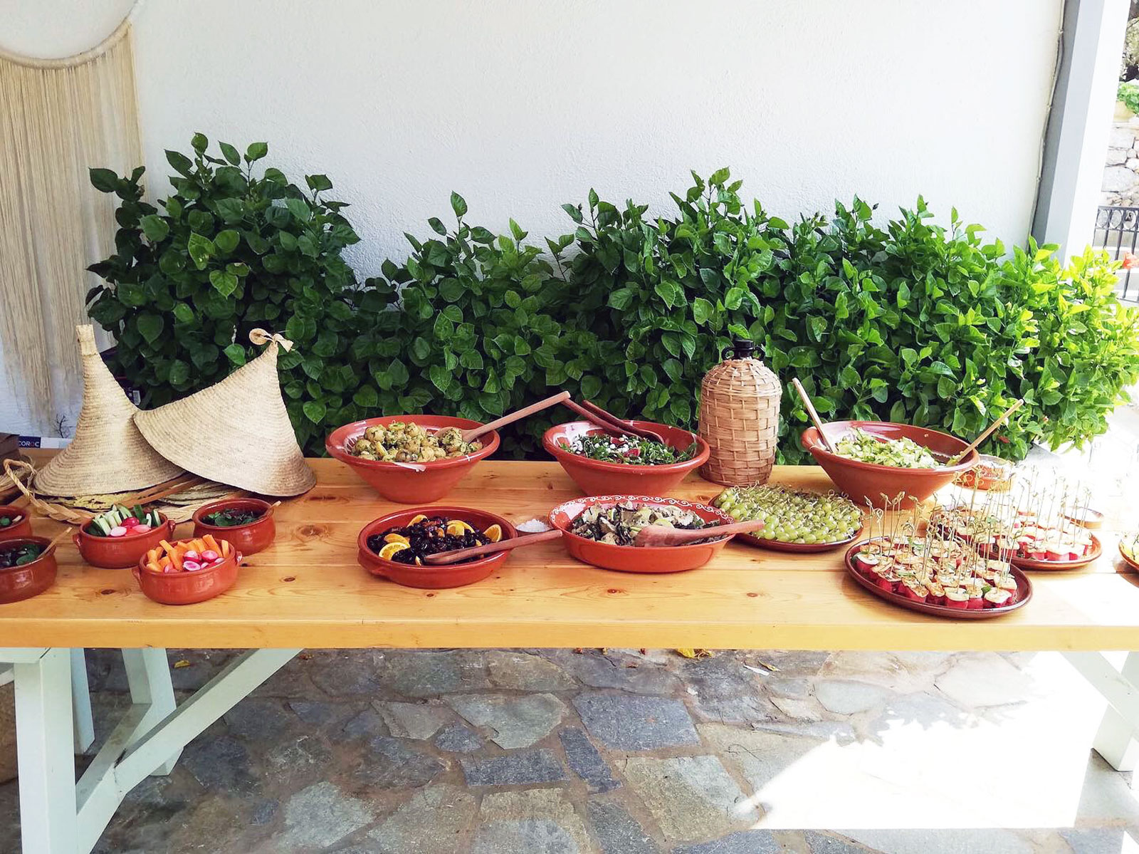 We were lucky to catch some sun for a while and guests enjoyed a light lunch served by us buffet style. Salads with fruit and vegetables, a white grape and almond gazpacho, marinated artichokes and cheeky halva puddings were some of the food that was prepared by me and indispensable co-chef Fotis Gavras.