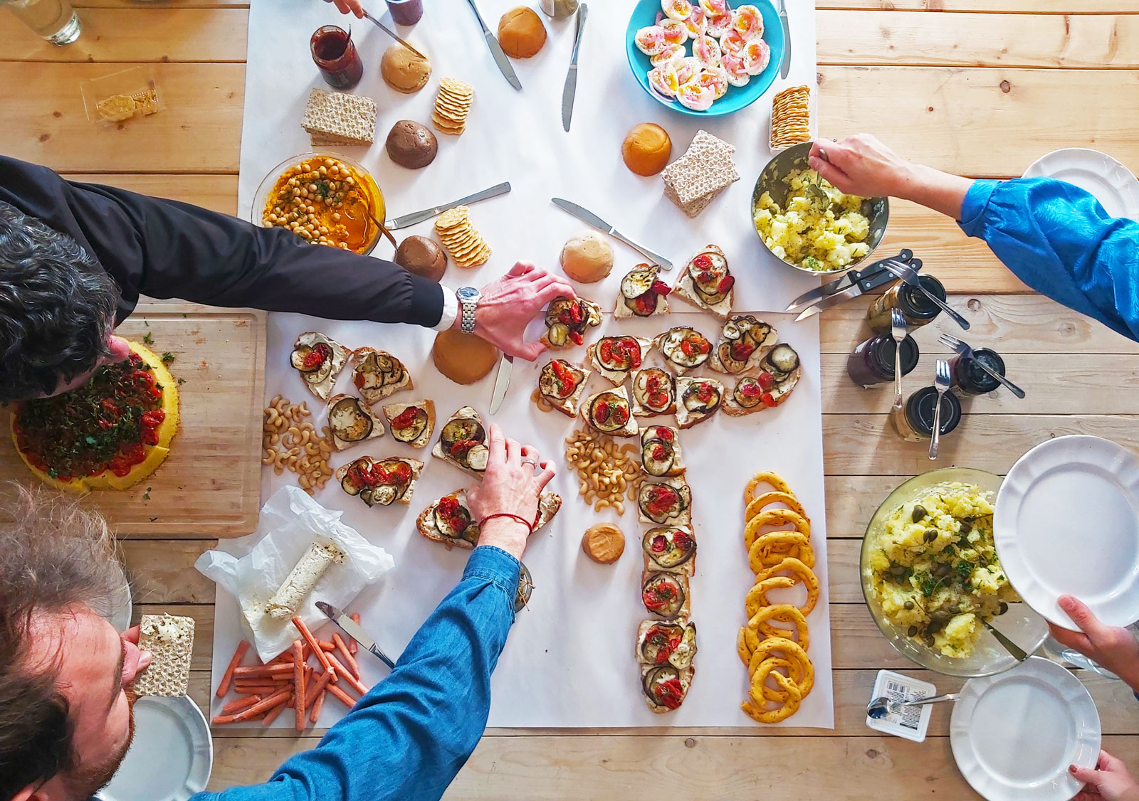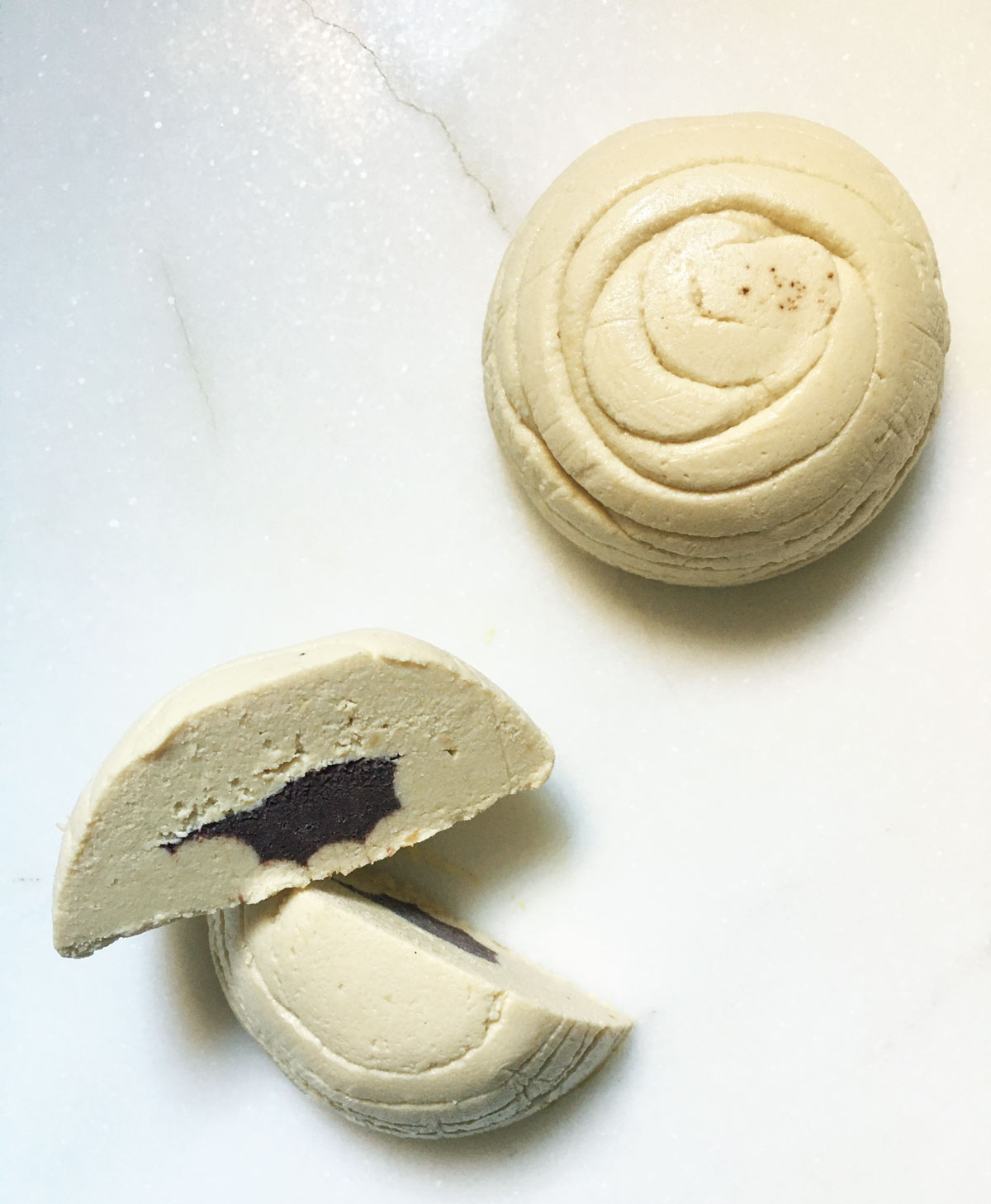 In this workshop, which took place at the Onassis Air residency, we used a cashew and macadamia nut base and tried different flavourings such as miso and turmeric, black garlic and porcini mushroom, truffle oil and a creamy version filled with olive paste.