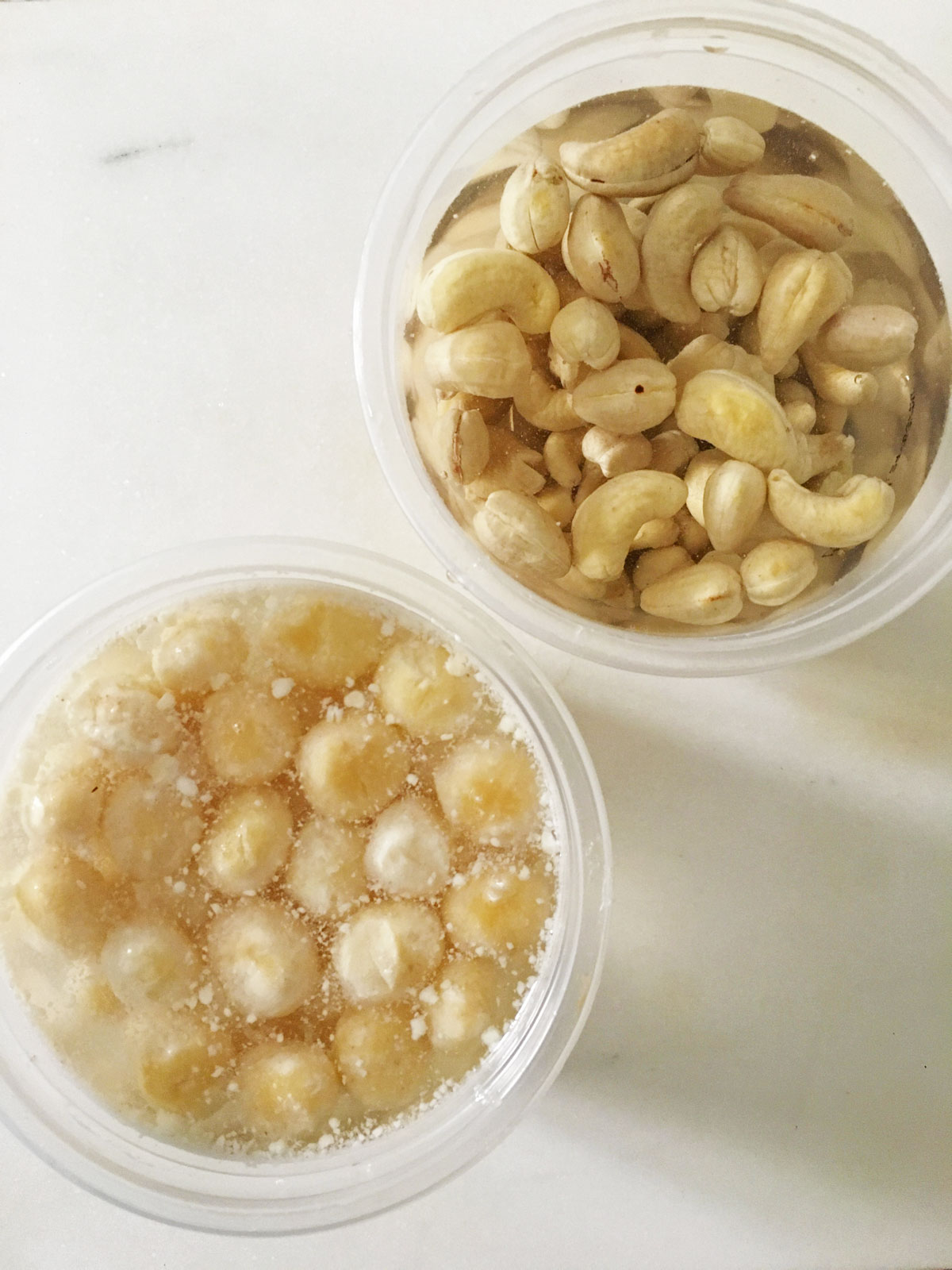 Making plant based “cheese” is a long process and involves many stages, some very similar to traditional dairy cheese making. The base for vegan cheese is nuts, mostly cashews because of their creaminess, which are soaked in water overnight and then blended into a smooth paste.